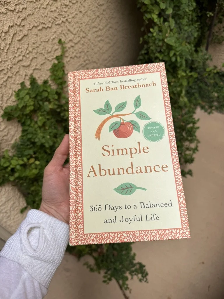 Earlier this year I walked into a bookstore looking for something of substance to give me what I desperately needed - inspiration. I was scanning the aisles when this orange book jumped out at me: Simple Abundance: 365 Days to a Balanced and Joyful Life by Sarah Ban Breathnach. It’s a daybook with a message for each day centering around abundance but touching on so much more. There are passages about have an emergency go bag, spring cleaning, and what it means to be authentically yourself. If you haven’t read it before, I would highly recommend doing yourself the honor of grabbing a copy.